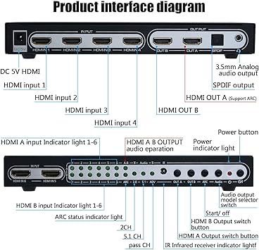 Agptek Extracteur Audio Splitter Switch Avec Mhl Arc By Pass Edid 5 1ch 2ch Ir Support Full Hd 1080p 3d Commutateur 4k 6 2 Arc Amazon Fr High Tech